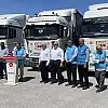 Konuşmaların ardından gıda malzemesi yüklü 3 tır dualarla uğurlandı.