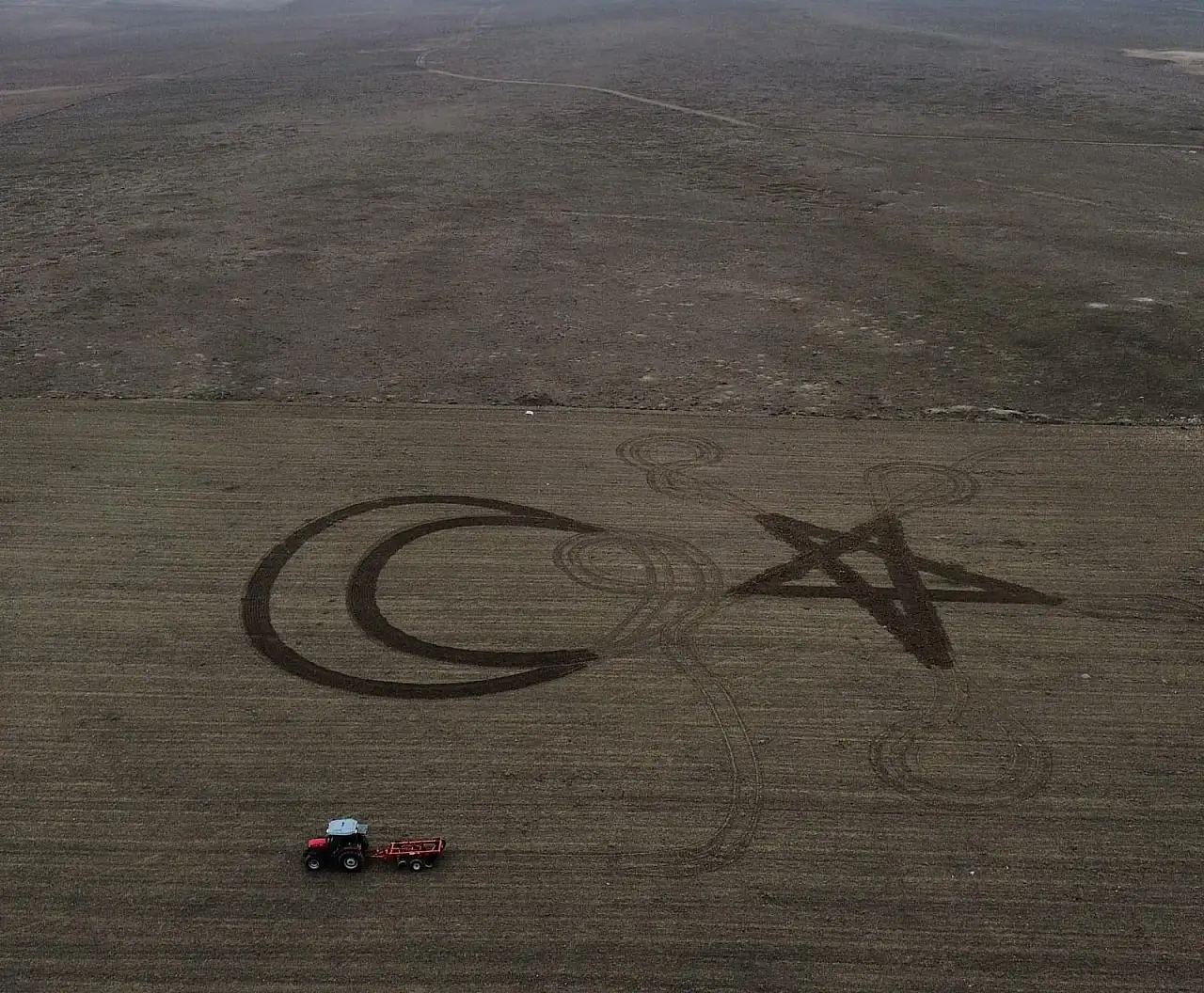 - Konyalı çiftçiden görsel şölen: Tarlasına Türk Bayrağı çizdi!