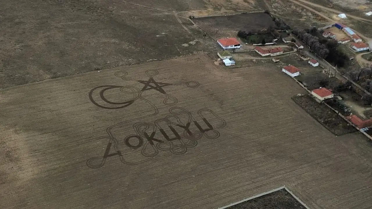 Konya’nın Kulu ilçesinde yaşayan çiftçi Salih Kesen, Kırkkuyu Mahallesi'nde bulunan 45 dekar büyüklüğündeki tarım arazisinde traktörüyle ay ve yıldız figürleri çizerek Türk bayrağını oluşturdu. Bu çalışma, havadan çekilen görüntülerle net bir şekilde ortaya çıktı ve çevredeki vatandaşlar tarafından büyük ilgiyle karşılandı. Kesen, tarlasındaki Ayyıldız figürünün milli duyguları yansıttığını ifade ederek, "Biz bu topraklarda doğduk, bu topraklarda üretim yapıyoruz. Ay-Yıldız bizim için sadece bir bayrak değil, geçmişimiz, şehitlerimiz ve geleceğimizdir. Tarlamda bunu görmek bana ayrı bir gurur veriyor" dedi.