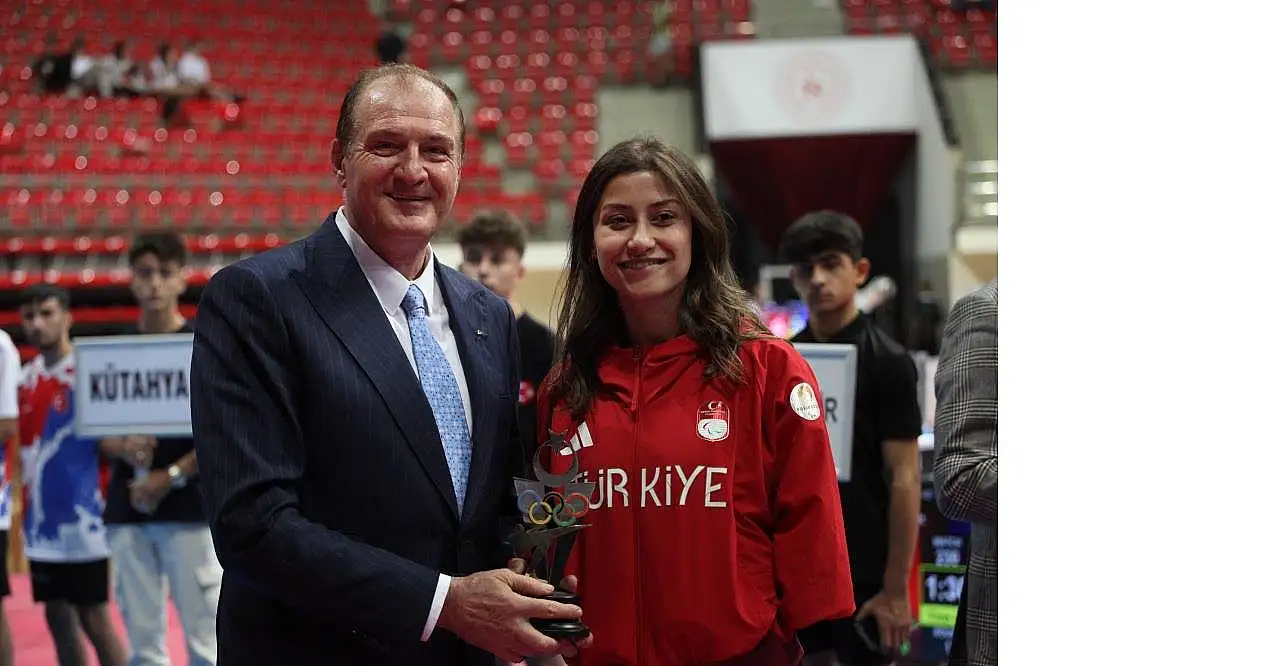 Türkiye Ümitler Tekvando Şampiyonası'na katılarak sporcular ile vakit geçiren Gamze Gürdal ve Ali Can Özcan'a Türkiye Tekvando Federasyonu Başkanı Metin Şahin tarafından plaket verildi.