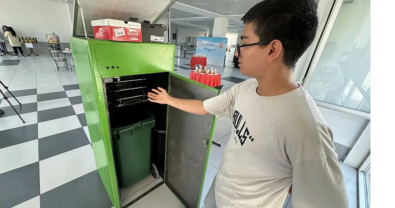 Liselilerin öğretmenleriyle geliştirdiği makineler, evsel atıkları 'değerli toprağa' dönüştürüyor, yemek artıklarını kedi ve köpekler için mama haline getiriyor.Sebze, meyve ve yumurta kabukları, çay ve kahve posaları gibi yemek öncesi hazırlık atıklarını