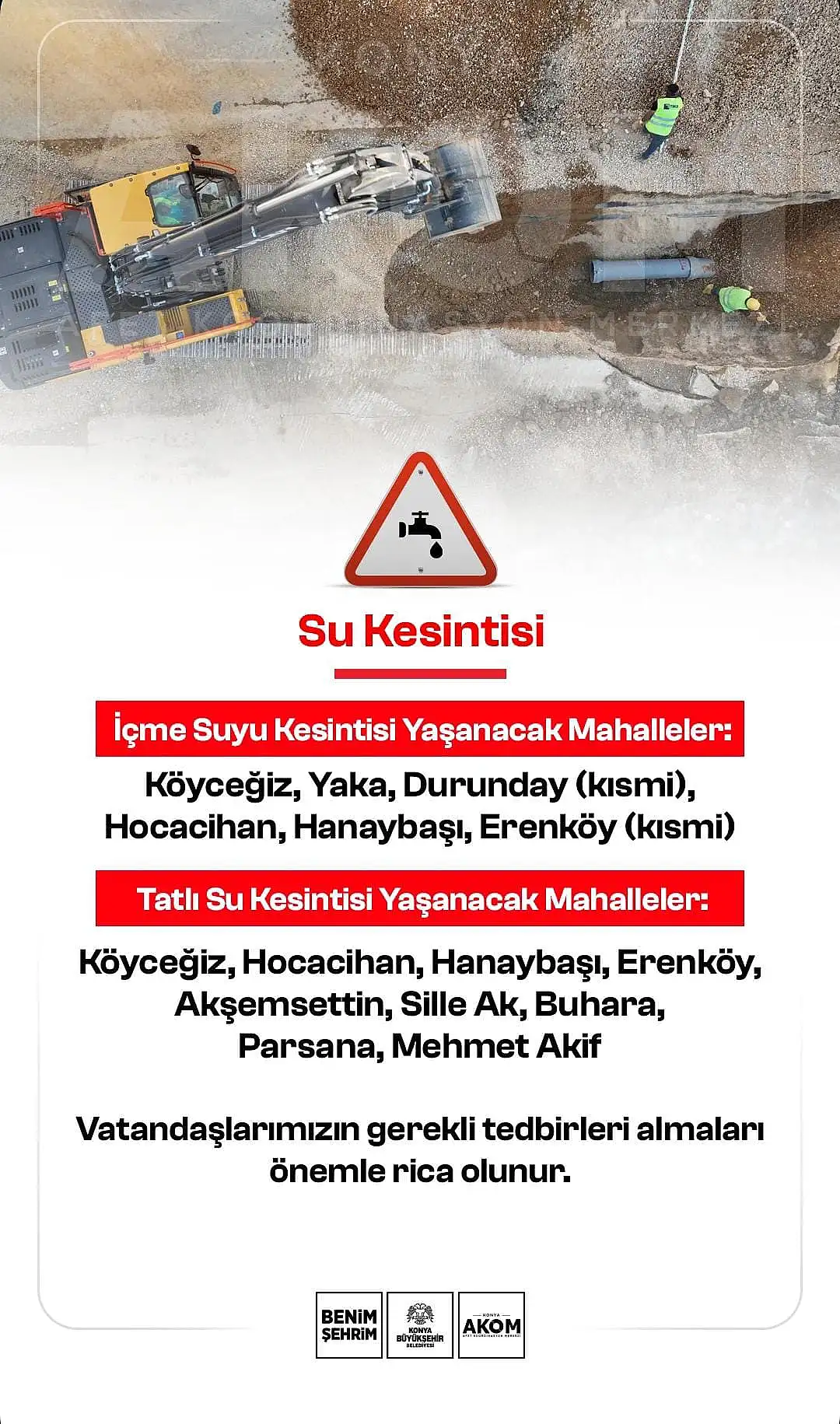 - Konyalılar dikkat! Yarın sular kesilecek!