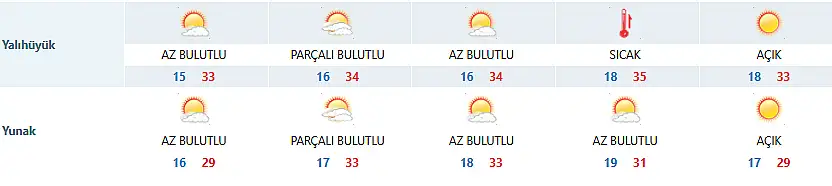 30 Ağustos Cumartesi günü ise sıcaklık artışını sürdürecek. Kent merkezinde 34 dereceye, bazı ilçelerde ise 35 dereceye ulaşması bekleniyor. Havanın parçalı bulutlu olmasına rağmen sıcaklık etkisini daha yoğun hissettirecek.