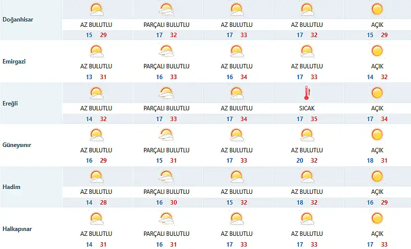 İŞTE KONYA VE İLÇELERİNDE HAVA DURUMU TAHMİNLERİ