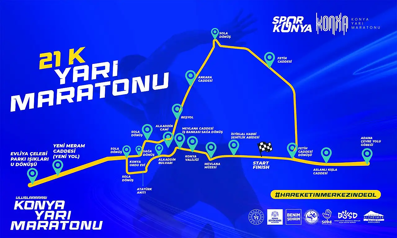 26 Mayıs Pazar günü Konya'da gerçekleşecek olan 3. Uluslararası Konya Yarı Maratonu sebebiyle Konya merkezindeki 24 cadde trafiğe kapalı olacak.