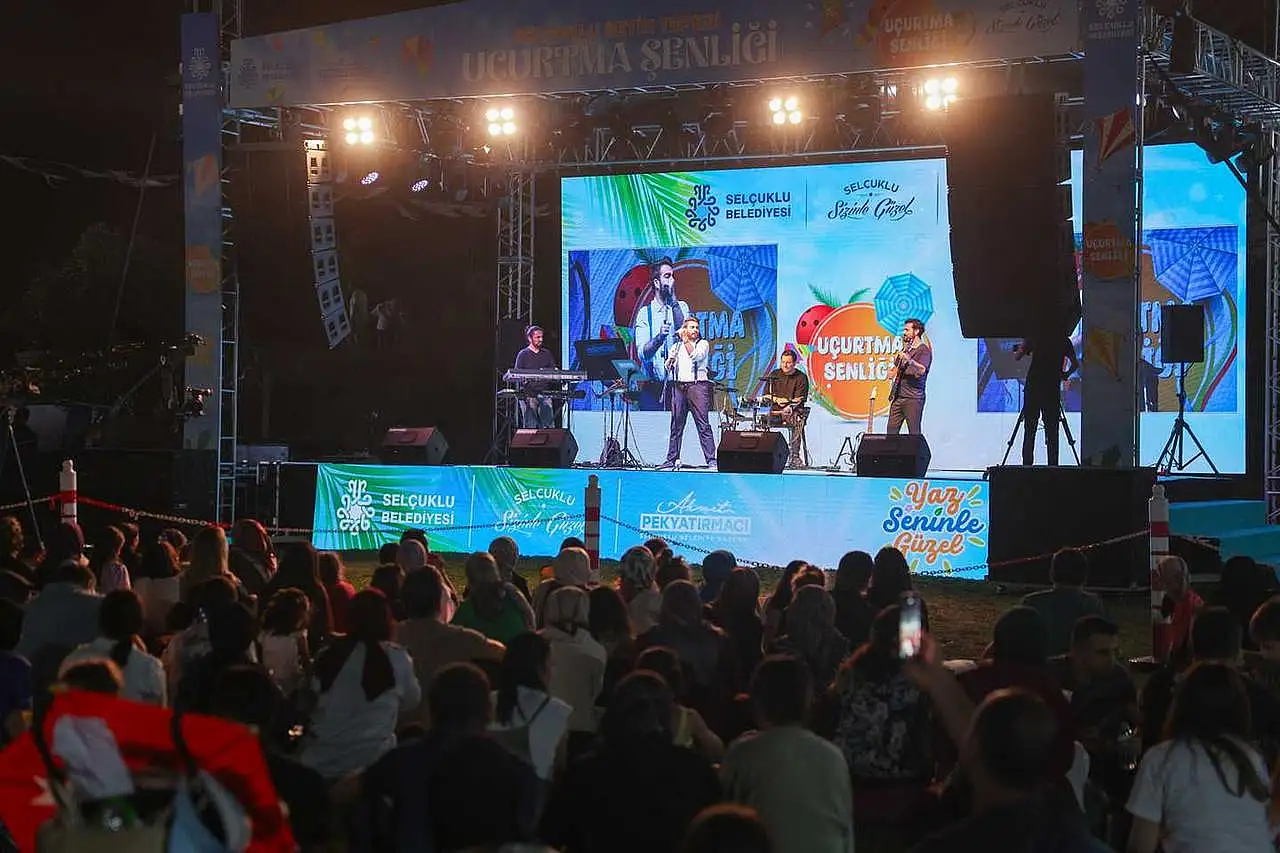 Selçuklu Belediyesi tarafından Selçuklu Seyir Tepesi’nde düzenlenen ve hafta sonu boyunca yoğun ilgi gören Uçurtma Şenliği coşkuyla sona erdi. Aileleriyle birlikte geleneksel hale gelen etkinliğe katılan çocuklar rengarenk uçurtmalarla gökyüzünü adeta bir şölen alanına çevirdi. Etkinlik kapsamında çeşitli animasyon gösterileri, interaktif ve şişme oyun alanlarında eğlenen çocuklar unutulmaz anılar kazandı. Bu yılki Uçurtma Şenliği’nde şehitlerimiz ve Filistin’de yaşamını yitiren binlerce masum insan için özel hazırlanan Türk ve Filistin bayrağı temalı uçurtmalar etkinliğe farkındalık kattı. Gün boyu süren etkinliklerin ardından Uçurtma Şenliği’nin finali akşam düzenlenen Furkan Ergün ile Eskimeyen Şarkılar Pop Müzik Konseri ile yapıldı.