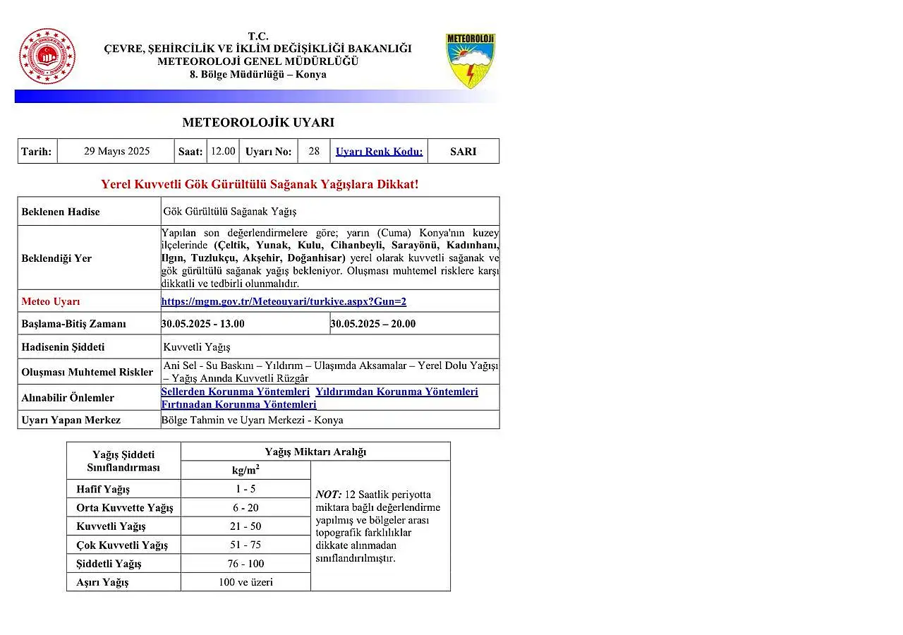 - Konya'nın 10 ilçesine sarı kodlu uyarı! İşte o ilçeler...