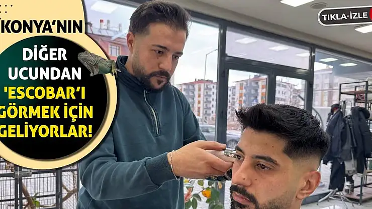 Karatay ilçesinde erkek kuaförü olan Mustafa Talha Aksöz, her gün iş yerini tropikal iklim sürüngeni iguanasıyla birlikte açıp, akşam saatlerinde de eve birlikte gidiyor.İş yerine gelen müşterilerinin saç tıraşını da devamlı omzunda taşıdığı iguanayla yap