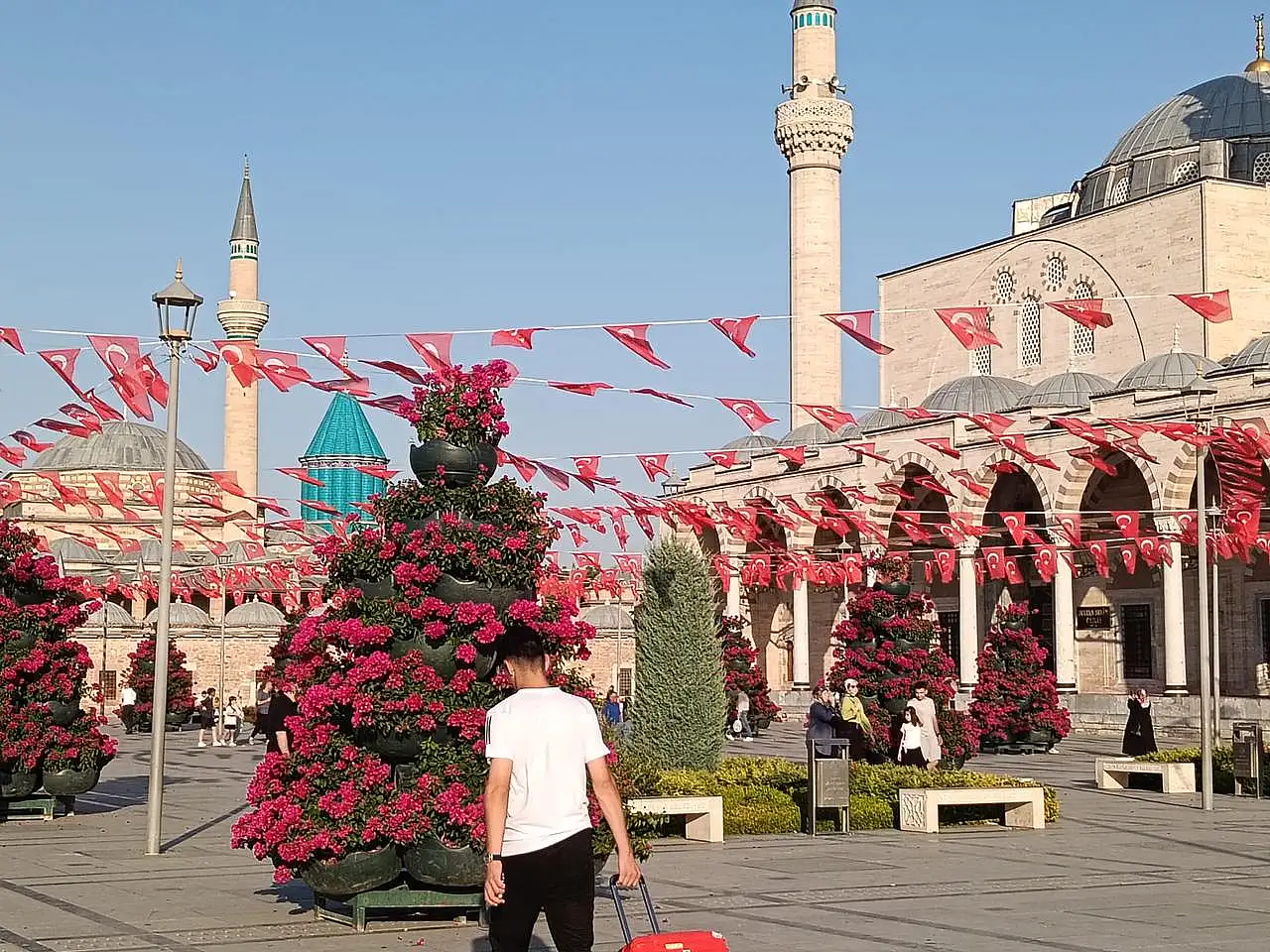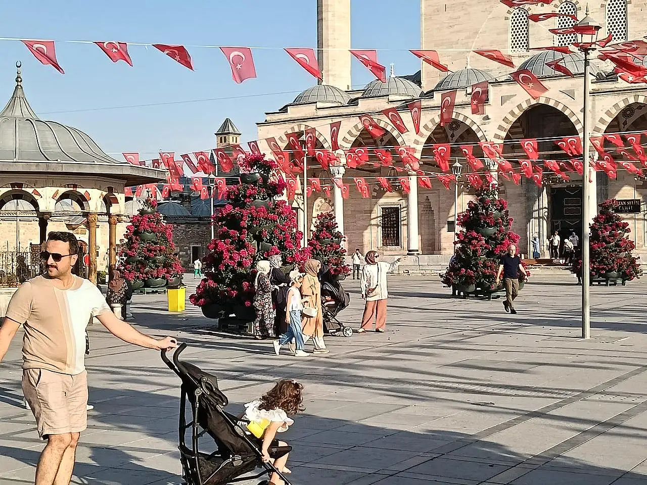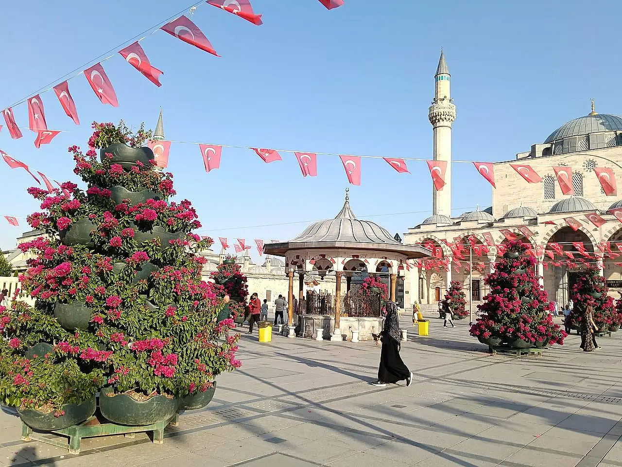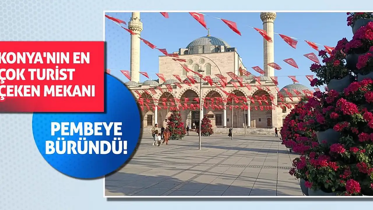 Konya'nın en çok ziyaret edilen turistik noktalarından biri olan Mevlana Türbesi ve çevresi, yaz aylarının gelişiyle birlikte görsel bir şölen sunuyor. Mevlana Meydanı’na dikilen pembe çiçekler, hem yerli hem yabancı turistlerin ilgisini çekiyor.