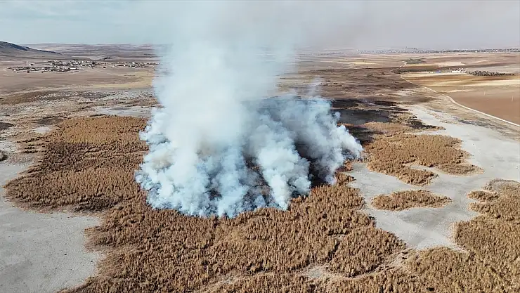 İlçenin 24 kilometre batısında Tuz Gölü Havzası içinde yer alan ve geçen yıl tamamen kuruyan göldeki sazlık alanda, iki gün önce henüz bilinmeyen nedenle yangın çıktı.