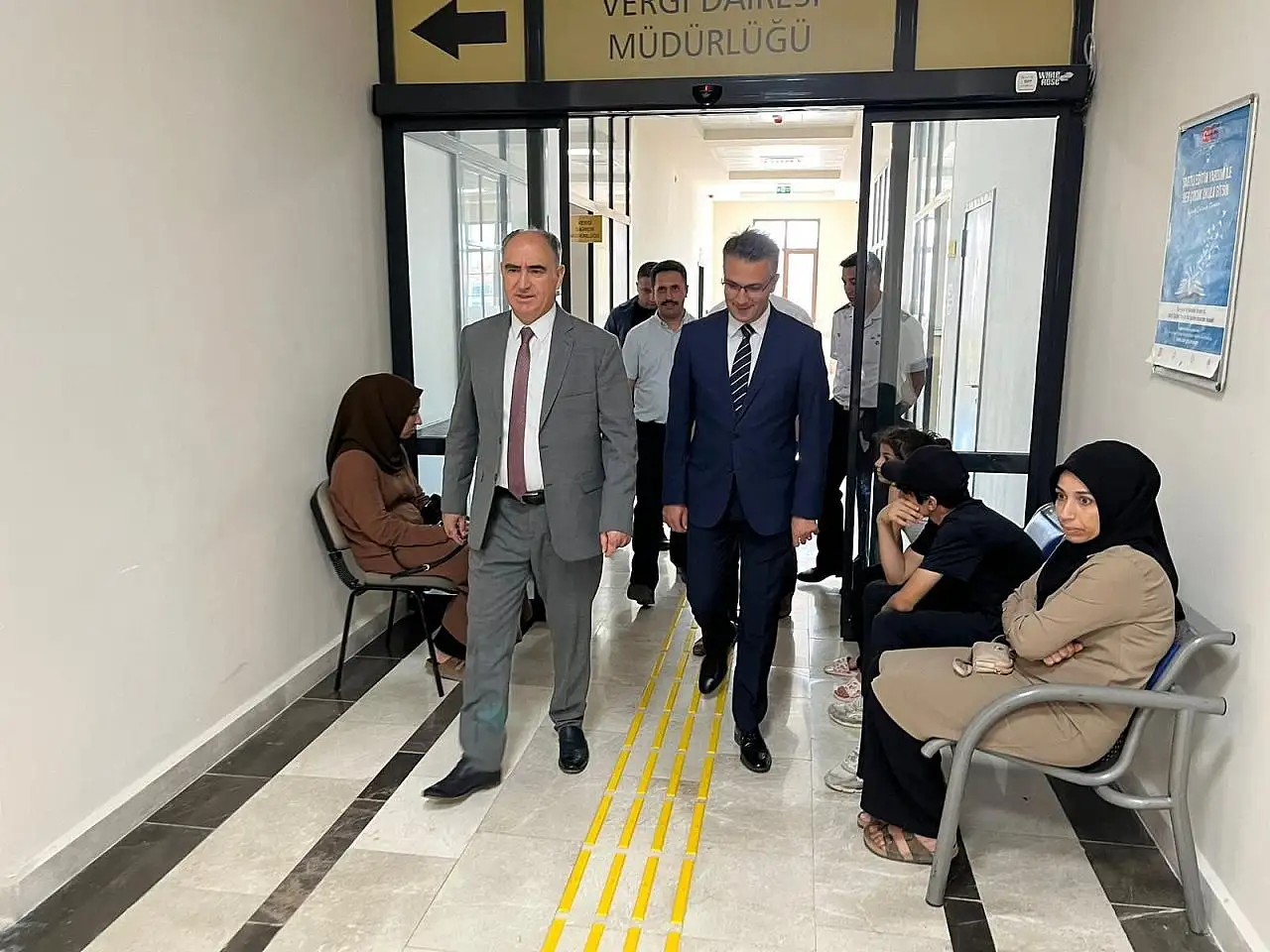 Kaymakamlıkta hizmet veren kurumları ziyaret eden Vali Özkan, verilen hizmetler ve yapılan çalışmalar hakkında kurum müdürlerinden detaylı bilgi aldı.
