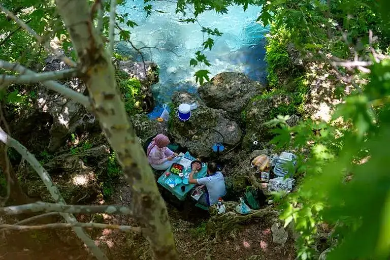 Özellikle havaların ısınmaya başlamasıyla birlikte bu şelale kenarında yapılan serin piknik ziyaretçileri mutlu ediyor.