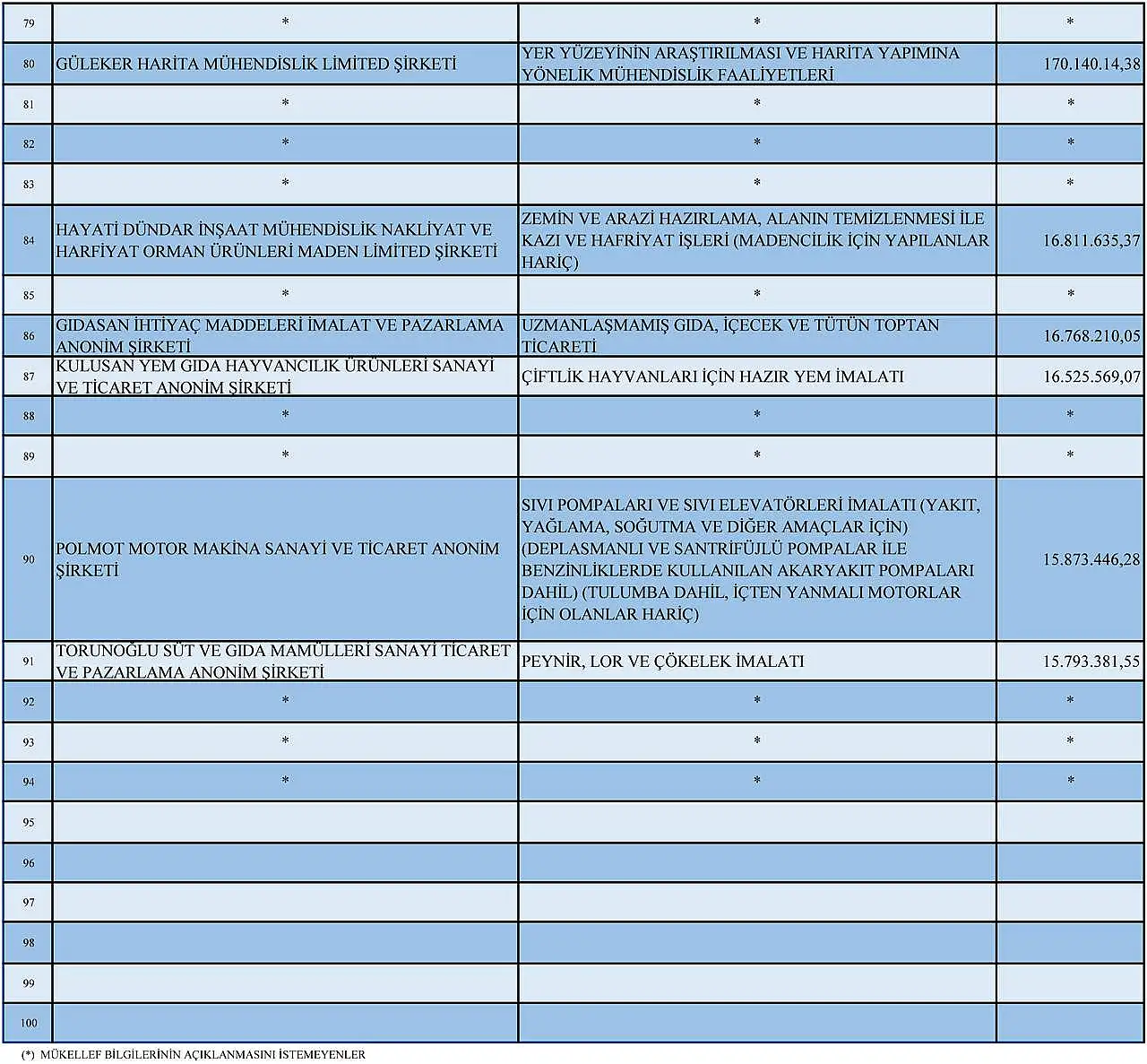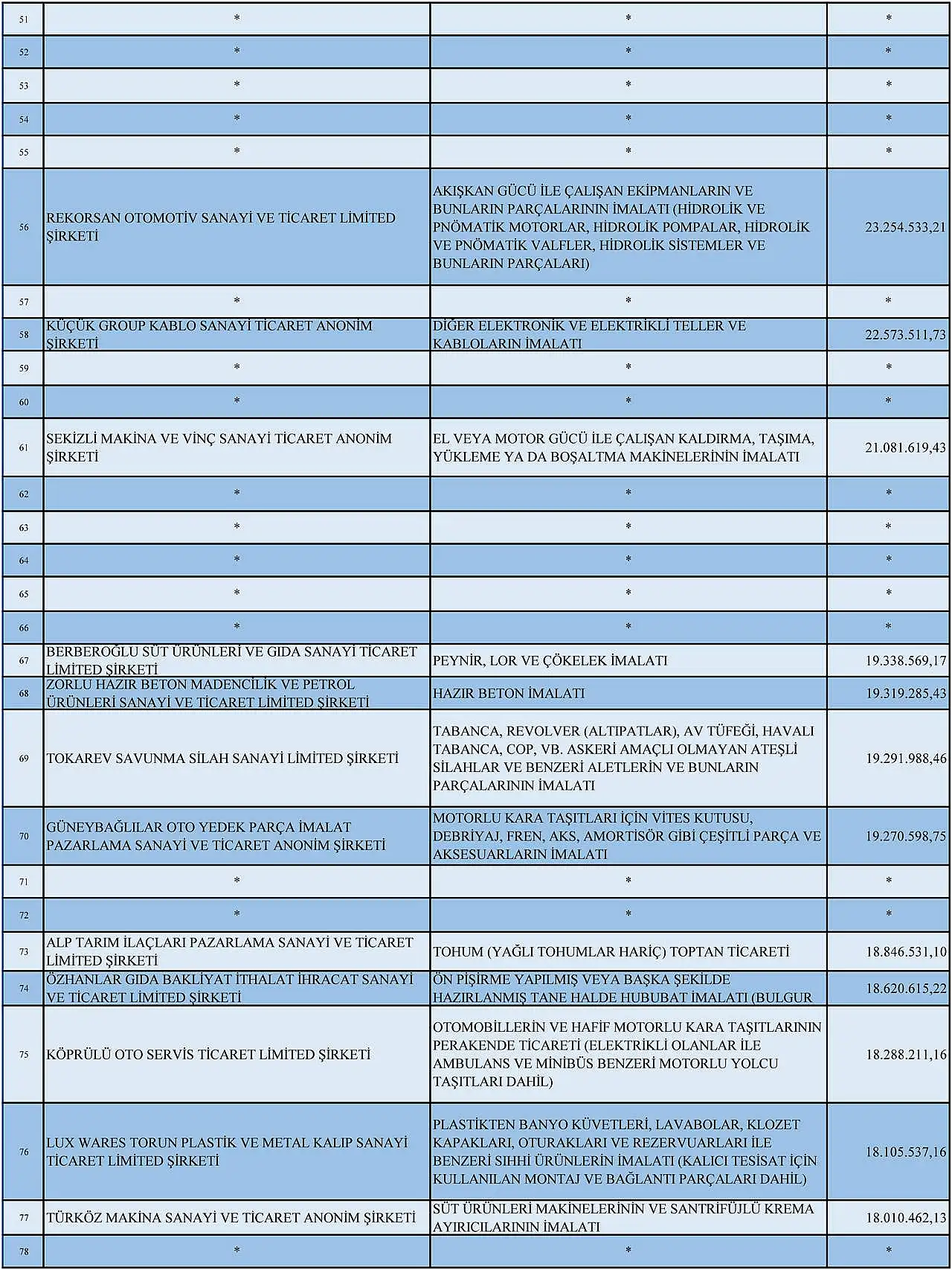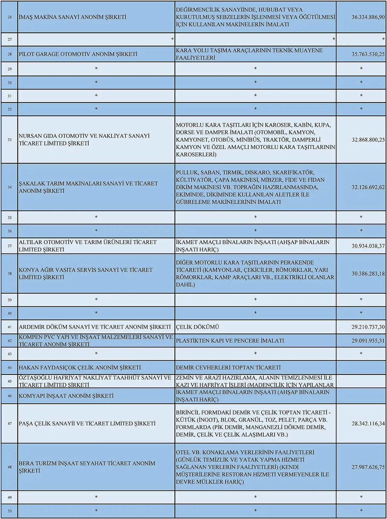 Açıklanan verilere göre, Konya’nın önde gelen şirketlerinden