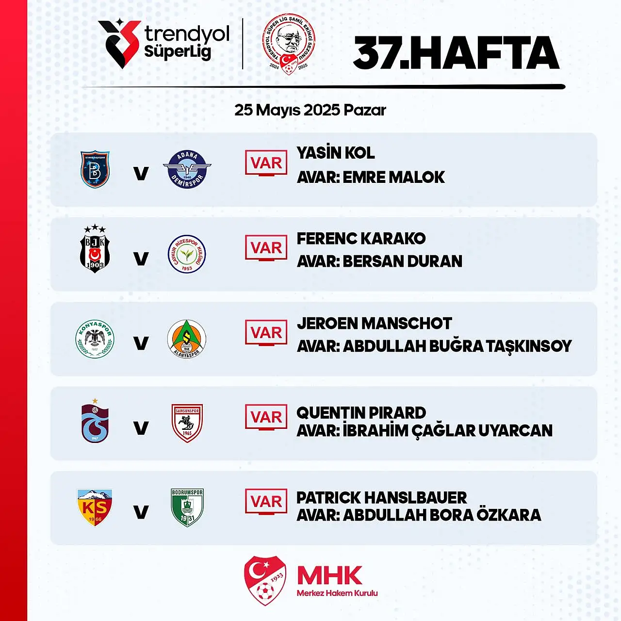 Kritik karşılaşmada VAR'da Hollandalı 42 yaşındaki Jeroen Manschot görev yapacak. Yardımcı AVAR hakemi Abdullah Buğra Taşkınsoy olacak.