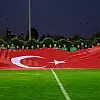 Yeşil-beyazlılarda teknik heyet ve oyuncular, antrenman öncesinde dev Türk bayrağı açarak 29 Ekim Cumhuriyet Bayramı'nı kutladı.