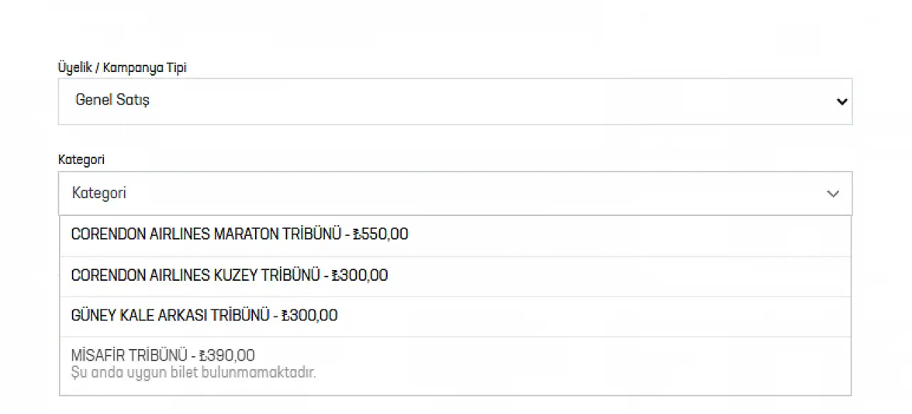 Bilet fiyatları kale arkası 300, maraton 550 ve misafir tribün de 390 TL olarak satışa sunuldu.