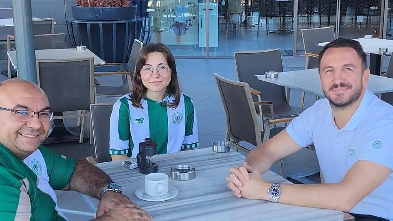 Sıkı Konyaspor taraftarlarından Tuncer Harmankaya, kızıyla birlikte Teknik Direktör Ali Çamdalı ile buluştu