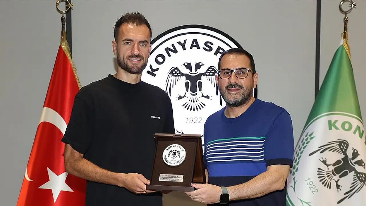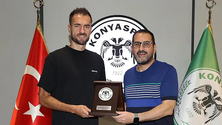 Tümosan Konyaspor, Sokol Cikalleshi'ye plaket vererek teşekkür etti.Konyaspor 2.