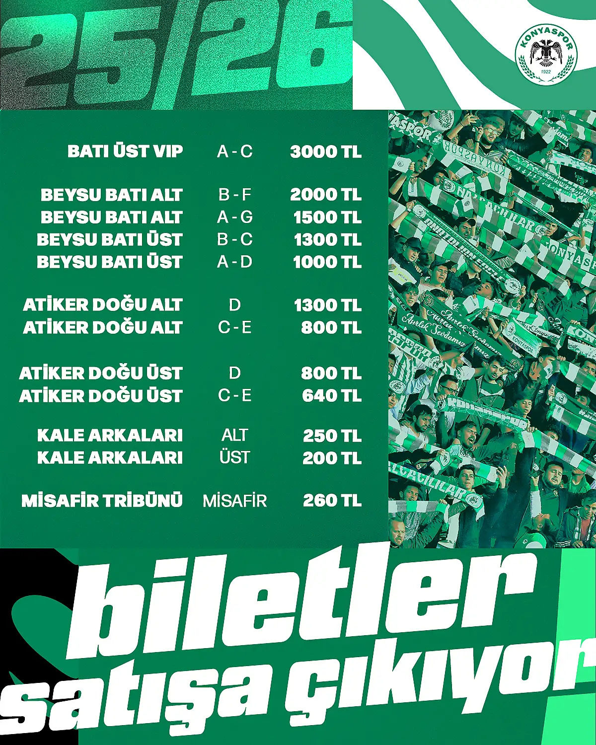 7 Ağustos Pazar günü saat 19.00’da MEDAŞ Konya Büyükşehir Stadyumu’nda oynanacak maçın biletleri satışa çıkıyor. Karşılaşmanın biletleri, 13 Ağustos Çarşamba günü saat 11.00 itibarıyla satışa sunulacak.