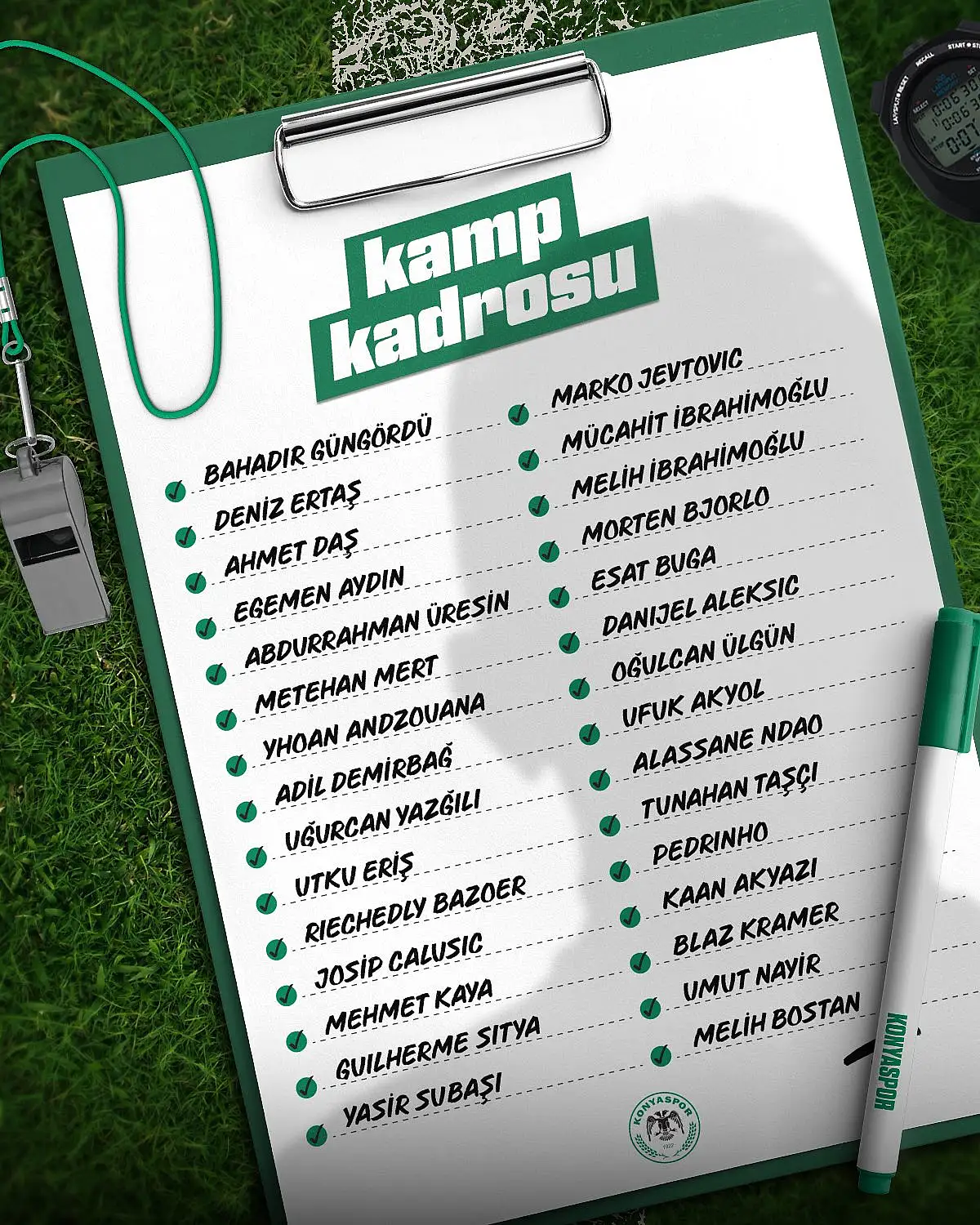 Konyaspor'da yarın başlayacak olan Erzurum kampının kamp kadrosu açıklandı.