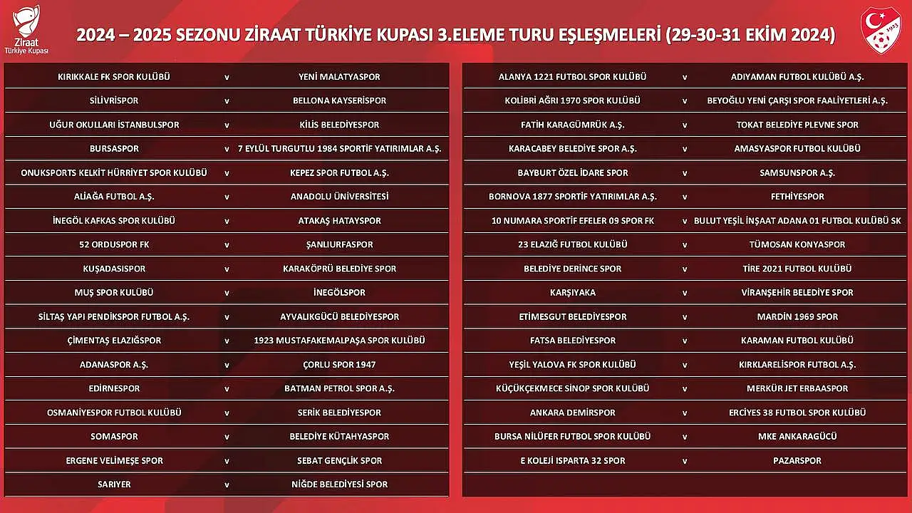 Konyaspor'un Ziraat Türkiye Kupası 3.turundaki rakibi 3.