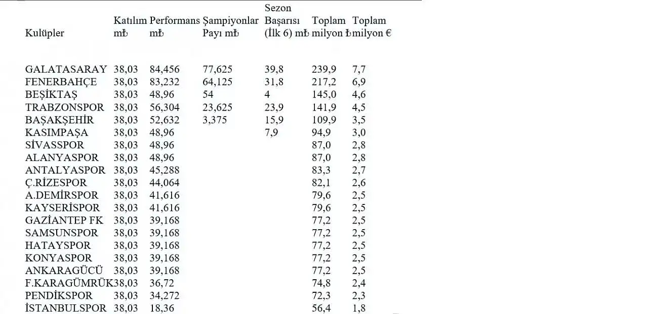 Yeni yapılan anlaşmayla katılım payı şu anki kurla 86,5 milyon lirayı açacak. Her galibiyet 6 milyon, beraberlik ise 3 milyon olacak. Bu miktar kurun yükselmesiyle daha da artacak.
