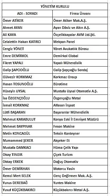 Konyaspor'un yeni yönetimi ilk toplantısını dün akşam saatlerinde Başkan Adayı Ömer Atiker'in 1.Organize'de bulunan Holding binasında gerçekleştirdi.