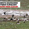 Leyleklerin büyük bölümünün ekili alanlar üzerinde hareketsiz bekledikleri dikkat çekerken, bazılarının da yiyecek arayarak beslenmeye çalıştığı görüldü.