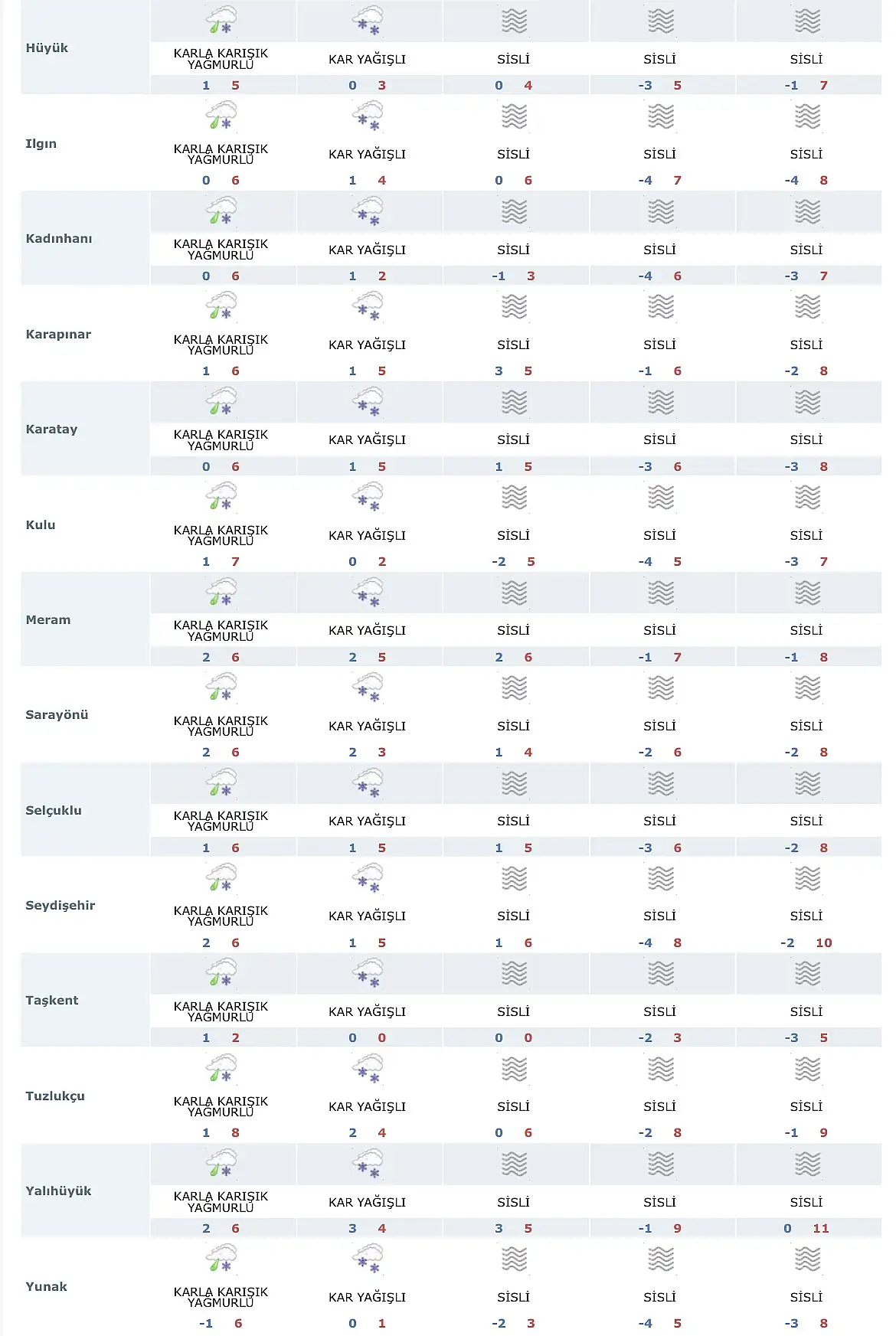 Konya bölge genelinin parçalı ve çok bulutlu, karla karışık yağmur ve kar yağışlı geçeceği tahmin ediliyor. Meteoroloji yeni hava durumu haritasın göre