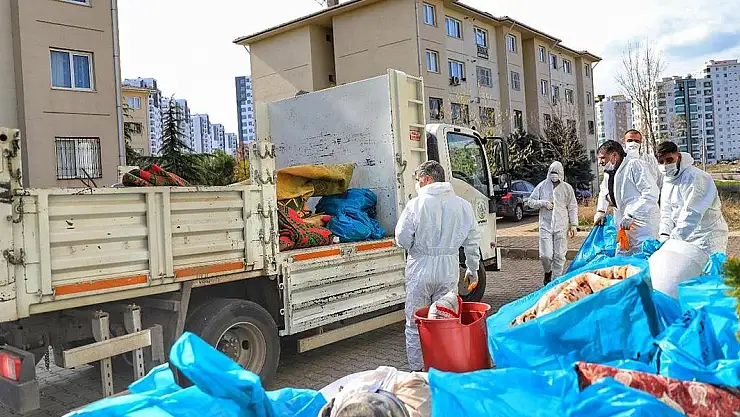Kadın kontrol için hastaneye götürülürken, çöpler evden çıkarıldı. Bir kamyon çöpün çıktığı evde daha sonra ilaçlama ve dezenfekte işlemi gerçekleştirildi.