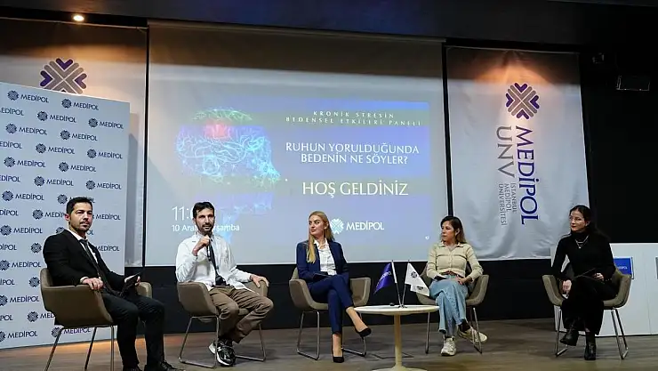 Medipol Mega Üniversite Hastanesi Konferans Salonu’nda düzenlenen ‘Kronik Stresin Bedensel Etkileri’ panelinin moderatörlüğünü Ruh Sağlığı ve Hastalıkları Uzmanı Doç. Dr. Taha Can Tuman üstlendi. Prof. Dr. Mehmet Ağırman, Doç. Dr. Buse Çağla Arı, Uzm. Dr. Sena İnal ve Uzm. Dr. Rahime Gök kronik stresin kaslardan bağışıklığa, cilt sağlığından beyin fonksiyonlarına kadar uzanan etkilerini anlattı.