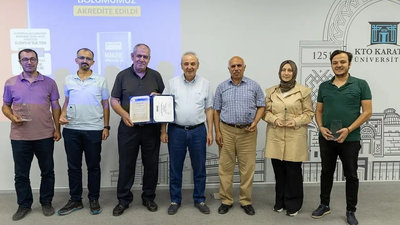 İnşaat Mühendisliği ve Makine Mühendisliği Bölümleri Akreditasyon Ödül Töreni, KTO Karatay Üniversitesi'nde düzenlendi.'TÜM BÖLÜMLERİMİZDE AKREDİTASYON ÇALIŞMALARIMIZA DEVAM EDİYORUZ' Törende açılış konuşmasını yapan KTO Karatay Üniversitesi Rektörü Prof.