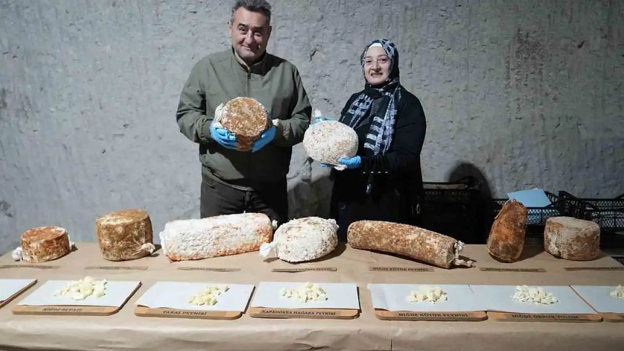 Niğde'de İl Özel İdaresi tarafından açılan doğal mağarada 5 yıl önce peynir üretimine başlayan Erbişim çifti geliştirdikleri peynirlerin siparişlerine yetişemiyor.