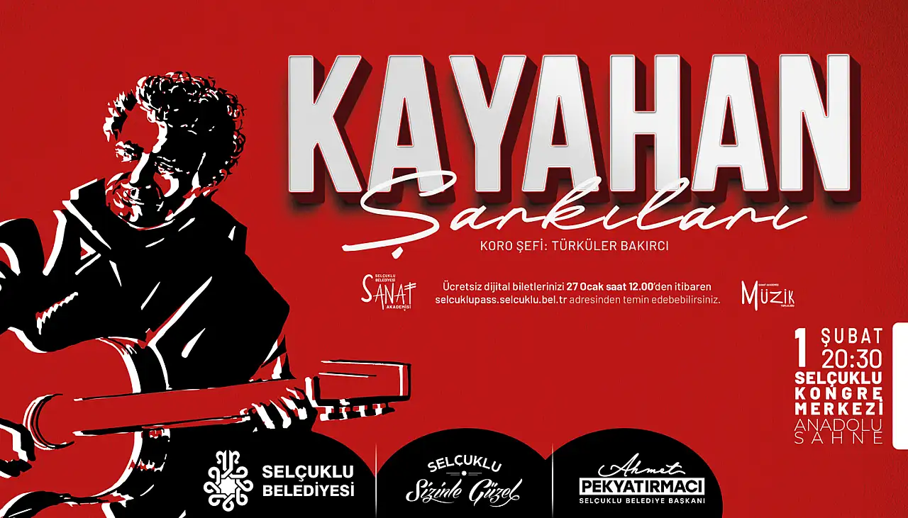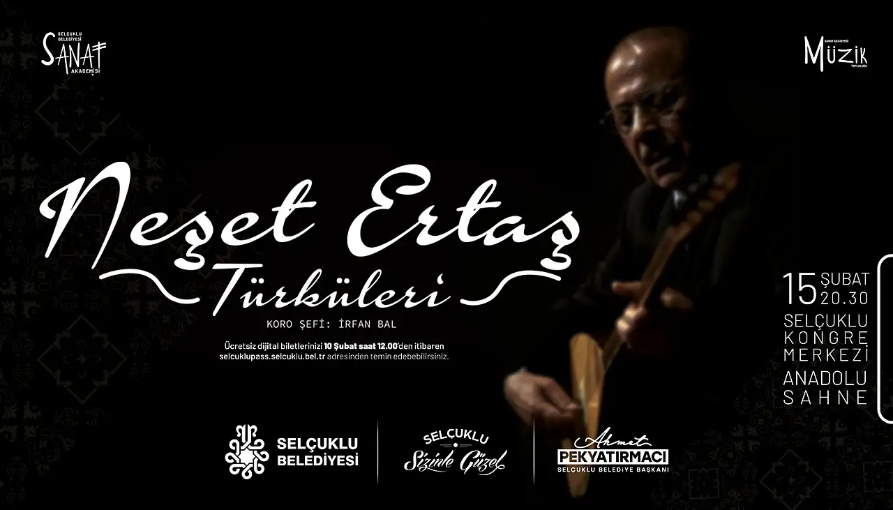 Türk müziğinin iki unutulmaz ismi, ‘Kayahan’ ve ‘Neşet Ertaş’ ın eserleri Selçuklu Kongre Merkezi Anadolu Sahnesi’nde hayat bulacak. Türk müziğinin sevilen bestecisi Kayahan’ın hafızalara kazınan şarkıları, 1 Şubat Pazar akşamı saat 20.30’da sahnede yankılanacak. Gecede usta sanatçının unutulmaz eserleri, müzikseverlere duygusal ve coşkulu anlar yaşatacak. Yine sözüyle ve sazıyla Türk milletinin gönlünde taht kuran Türk halk müziğinin efsane ismi Neşet Ertaş’ın türküleri de 15 Şubat’ta Anadolu Sahnesi’nde dinleyiciyle buluşacak. Bozkırın tezenesi Ertaş’ın türküleri Sanat Akademisi Müzik Topluluğu’nun yorumuyla sanatseverlere duygu dolu bir gece yaşatacak.