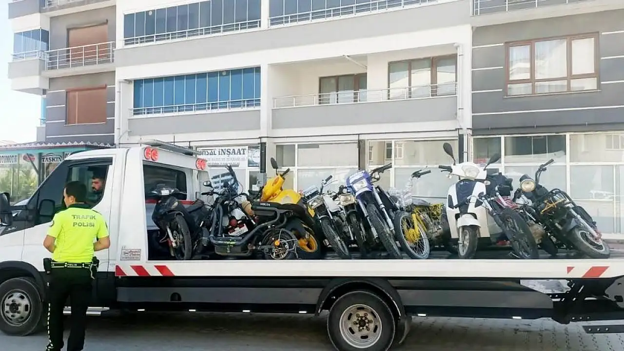 - Kulu'da plakasız ve belgesiz motosikletler toplanıyor