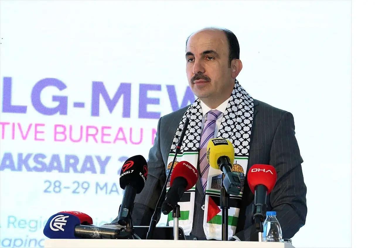"Kentler, medeniyetin doğduğu, kültürlerin yoğrulduğu ve fikirlerin filizlendiği yerlerdir. Sadece yapı taşlarıyla değil, barındırdığı insan hikayeleriyle, sosyal ilişkiler, ekonomik dinamikler ve kültürel zenginliklerle şehirler bir toplumun kimliğini şekillendirir. Bugün karşı karşıya kaldığımız küresel sorunların çözüm noktası da yine şehirlerdir. İklim değişikliği, göç, sosyal eşitsizlik ve dijital dönüşüm krizleri, küresel başlıklar olduğu kadar şehirlerin de gündemindedir. Bu sorunların çözümsüzlüğünü, sokaklarımızda, meydanlarımızda ve mahallelerimizde hissetmekteyiz. Bu anlamda UCLG-MEWA, yerel yönetimlerin küresel ölçekli sesi olma vizyonunu başarıyla sürdürmektedir. Toplantılarımızda, yaşam kalitesi gibi giderek daha kritik hale gelen kavramın ölçülmesinden sürdürülebilir kalkınmanın yerelleştirilmesine, iklim değişikliğine uyumdan yönetim reformlarından pek çok hayati meseleyi birlikte değerlendireceğiz."