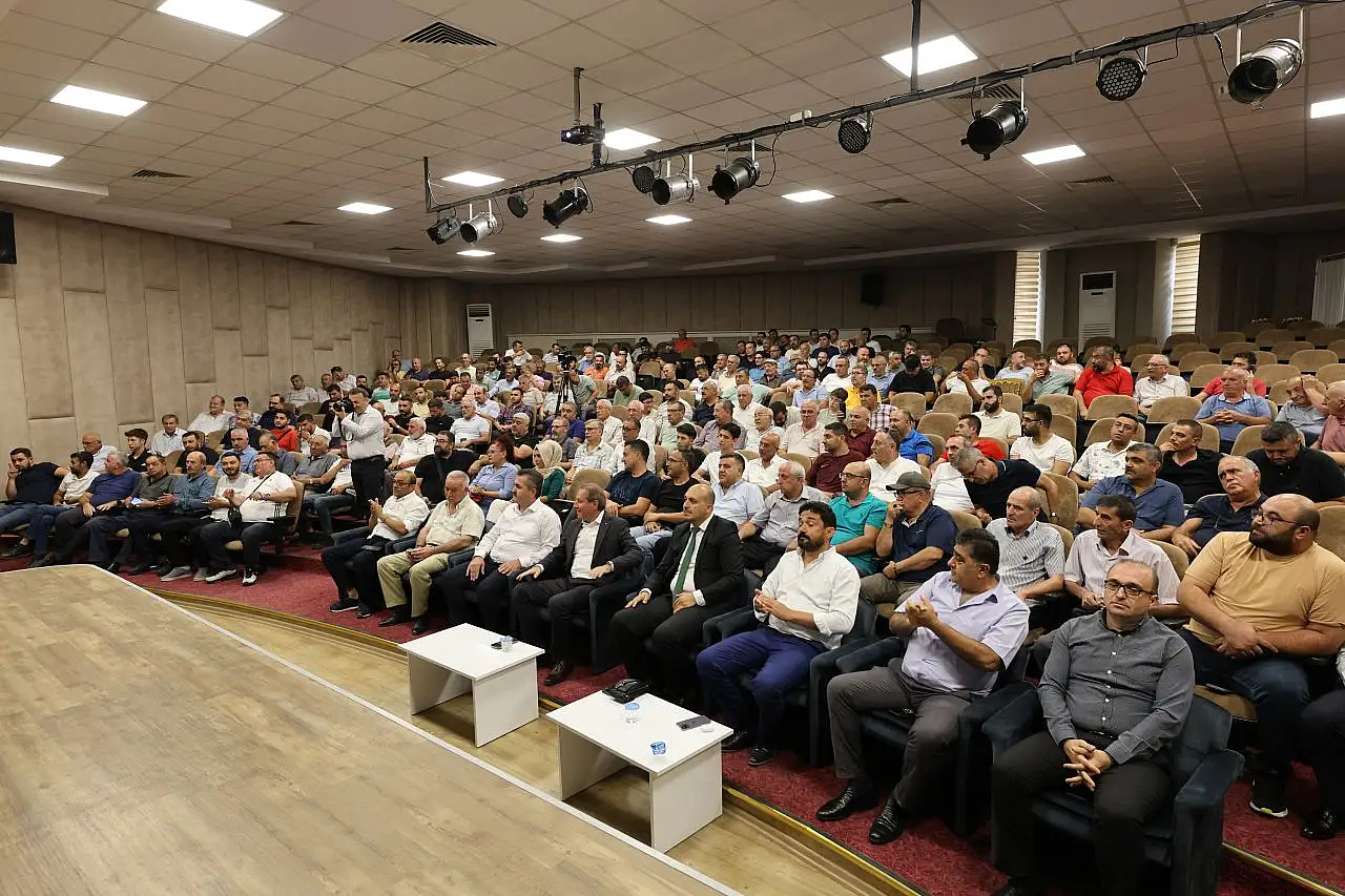 Konya Esnaf ve Sanatkârlar Odaları Birliği (KONESOB) Konferans Salonu’nda düzenlenen kura çekim törenine katılan KONESOB Başkanı Muharrem Karabacak ve Konya Şoförler ve Otomobilciler Odası Başkan Ahmet Şen, Yeni Kamyon Garajının hayırlı olmasını dileyerek, Konya Büyükşehir Belediye Başkanı Uğur İbrahim Altay’a teşekkür etti.