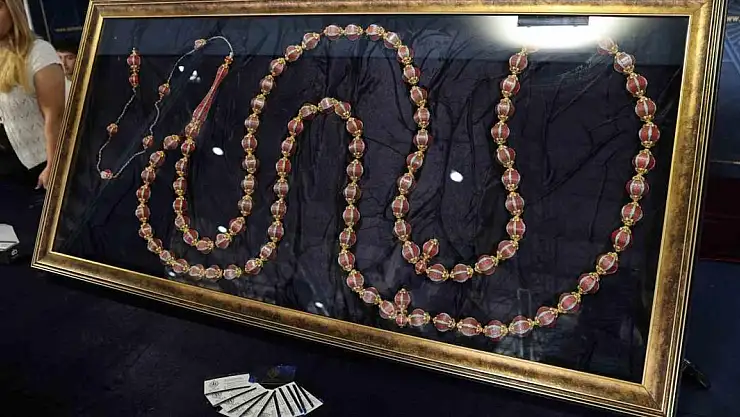 Tespih ustaları Arda İşler ve Sinan Demiral, 6 sene önce Kur'an-ı Kerim'in 604 sayfasını, hatim ile duaları tespihe nakşetmek istedi. O dönem bu hayallerini gerçekleştiremeyen 2 usta, 14 ay önce yeniden çalışmalara başladı. 14 ay boyunca 8 kişiyle çalışan ustalar, Kur'an-ı Kerim'in 604 sayfasını, 36 sayfada hatim ve duaları 925 ayar gümüş kaplama olarak devasa tespih habbelerine işledi. 328 bin harfin işlendiği tespih, Allah lafzı şekline getirildi ve tablo olarak ilk kez Adana'da bu sene 4'üncüsü düzenlenen Tespih ve Doğal Taşlar Fuarı'nda görücüye çıkartıldı. Her görenin ilgisini çeken tespih tablosu, vatandaşlar tarafından beğeniyle incelendi.