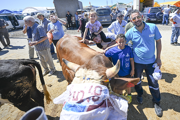 Bayram namazını kıldıktan sonra sıra numaralarına göre mezbahalara gelen vatandaşlar yoğunluk oluşturdu.