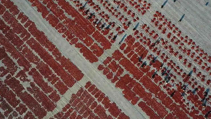 Ege'nin verimli ovalarında yetişen ve güneşte kurutulan domatesler, işlemlerin ardından başta ABD ve Avrupa ülkeleri başta olmak üzere çeşitli ülkelere ihraç ediliyor.
