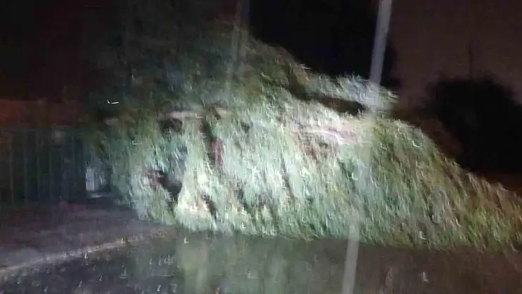 Aydın'da gece saatlerinde etkili olan kuvvetli rüzgar ve fırtına nedeniyle bazı ağaçlar devrildi, trafikte aksamalar yaşandı.