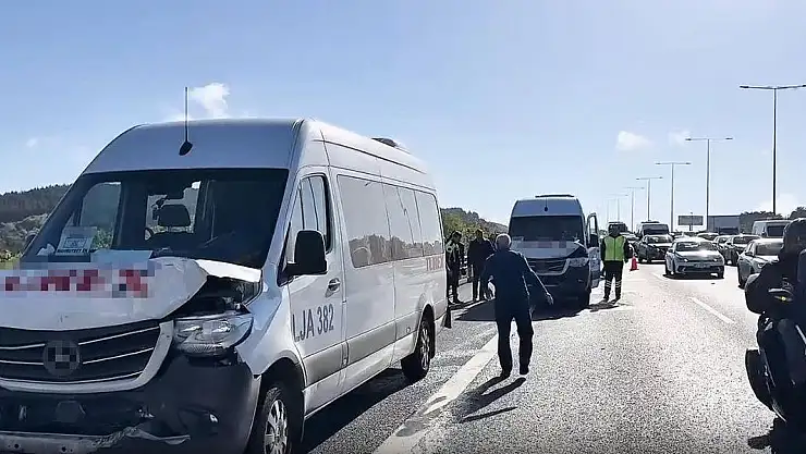 Kaza nedeniyle servislerden inen vatandaşlar bir süre yol kenarında beklerken, otoyolda uzun araç kuyrukları oluştu.