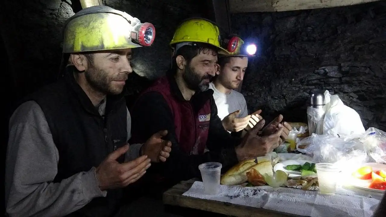 Maden işçileri yerin metrelerce altında ilk sahurlarını yaptı