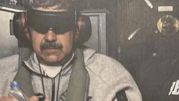 ABD Başkanı Donald Trump, Truth Social hesabından Nicolas Maduro'nun ABD Savaş gemisindeki fotoğrafını paylaştı. Maduro fotoğrafta gözleri bağlı, elleri kelepçeli olarak görülüyor.