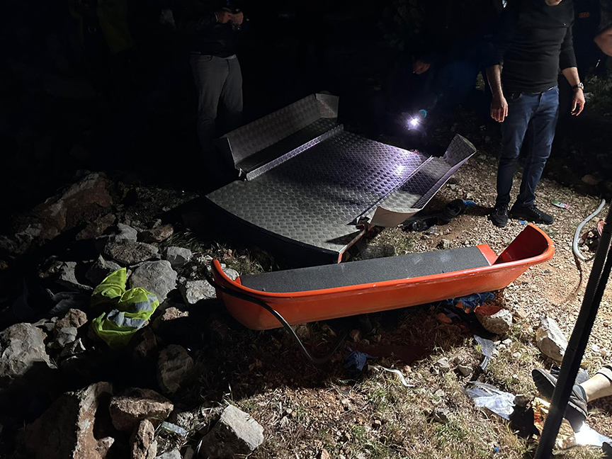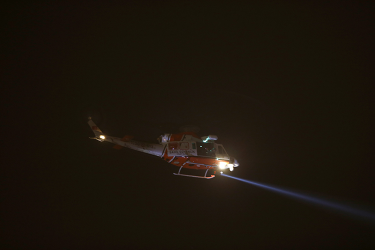 Gece uçuş kabiliyetine sahip bir jandarma helikopteri bölgeye ulaşarak kurtarma çalışmalarına katıldı. Kabindeki bir kişi sedyeyle helikoptere alındı.