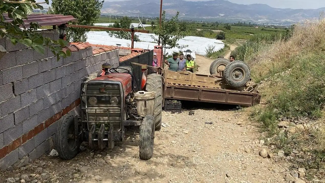 Manisa'nın Alaşehir ilçesinde M.E'nin kullandığı traktörün römorku, Çakırcaali Mahallesi'nde devrildi.