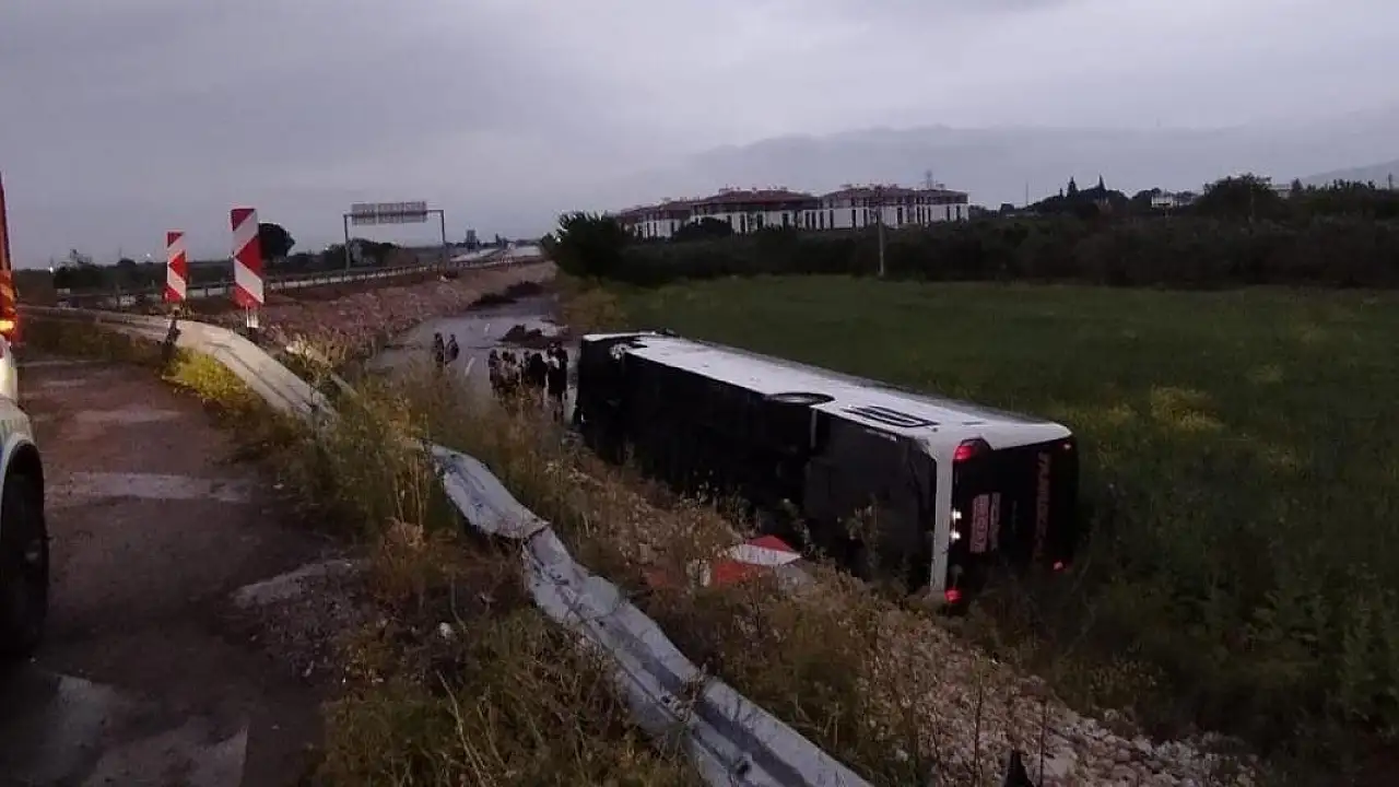 Manisa'da yolcu otobüsü devrildi: 16 yaralı