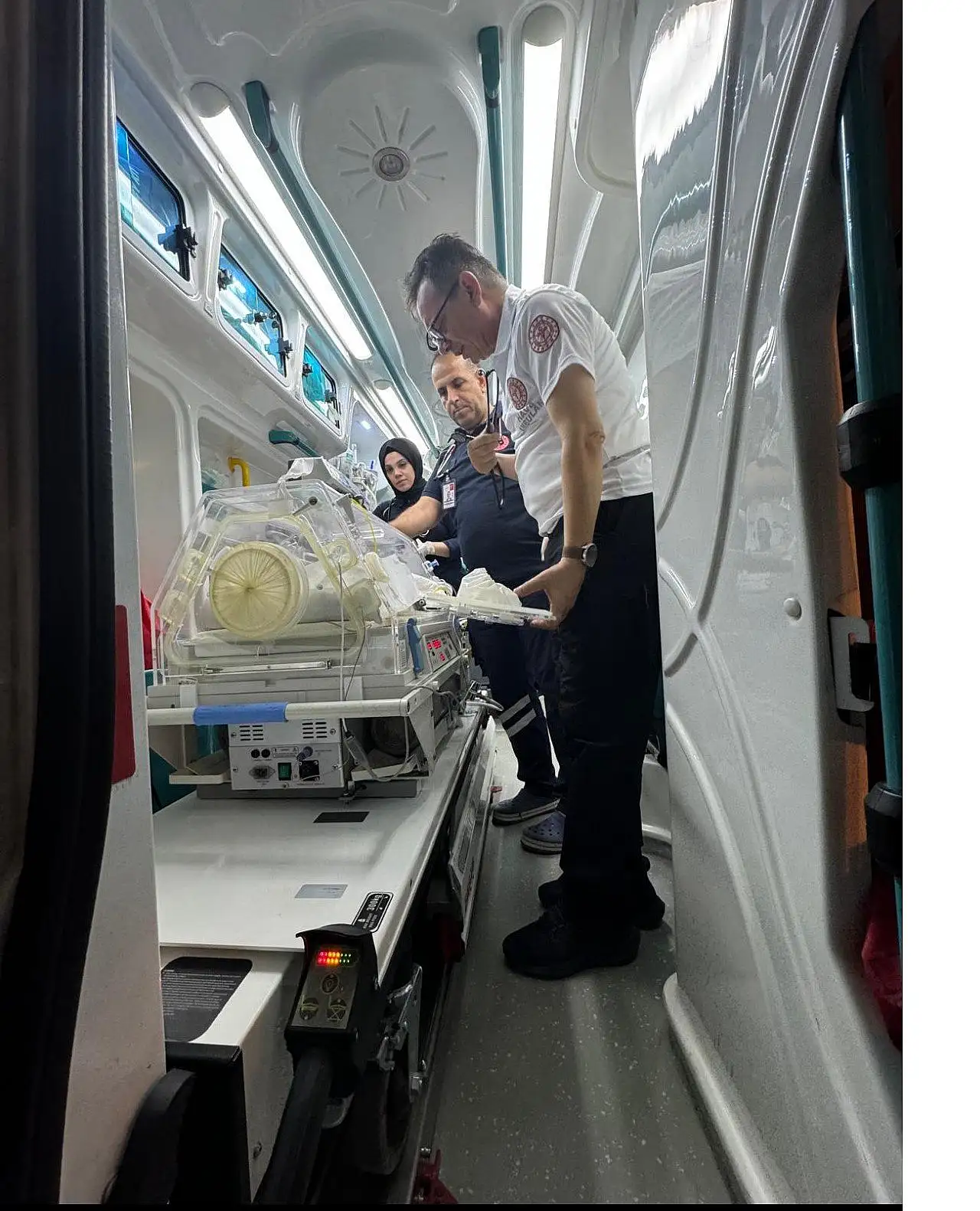 Mardin Eğitim ve Araştırma Hastanesinde Yenidoğan Yoğun Bakım Ünitesinde solunum distresi-aort koarktasyonu tanısı ile tedavi gören 5 günlük Seher Tokay isimli bebek, ileri tetkik ve tedavi ihtiyacı dolayısıyla, Mardin Prof.Dr.