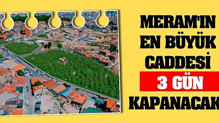 Meram'ın en büyük caddesi 3 gün kapanacak!