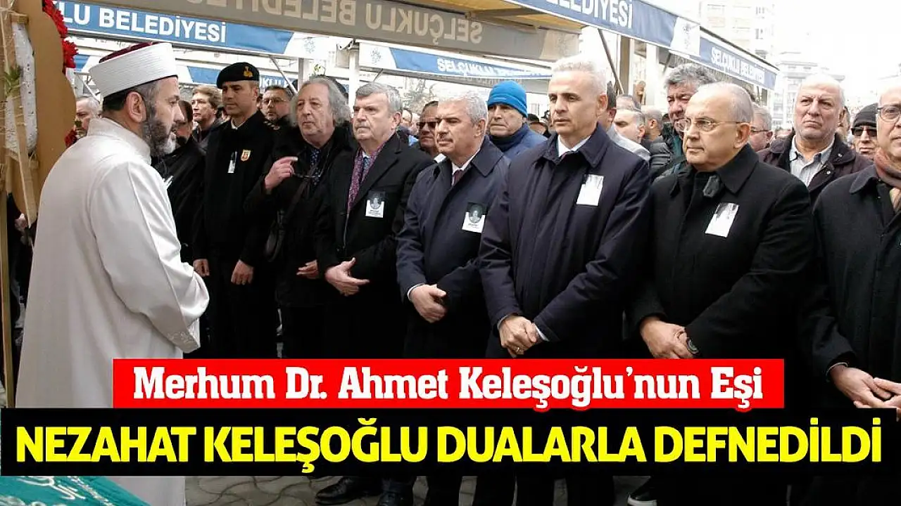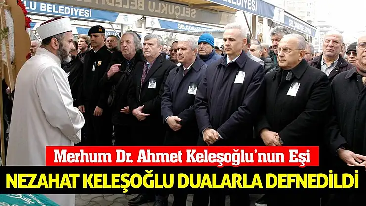 Önceki gün İstanbul’da vefat eden Ahmet ve Nezahat Keleşoğlu vakfının kurucularından ve Konya’nın yakından tanıdığı Eğitim gönüllüsü ve Hayırsever işadamı Merhum Dr. Ahmet Keleşoğlu’nun eşi Merhume Nezahat Keleşoğlu, dün Büyük Parsana Cami’nde öğle namazına müteakip Konya Müftüsü Ali Öge’nin kıldırdığı cenaze namazının ardından Musalla Mezarlığındaki eşi Merhum Dr. Ahmet Keleşoğlu’nun yanında yapılan dualarla defnedildi.